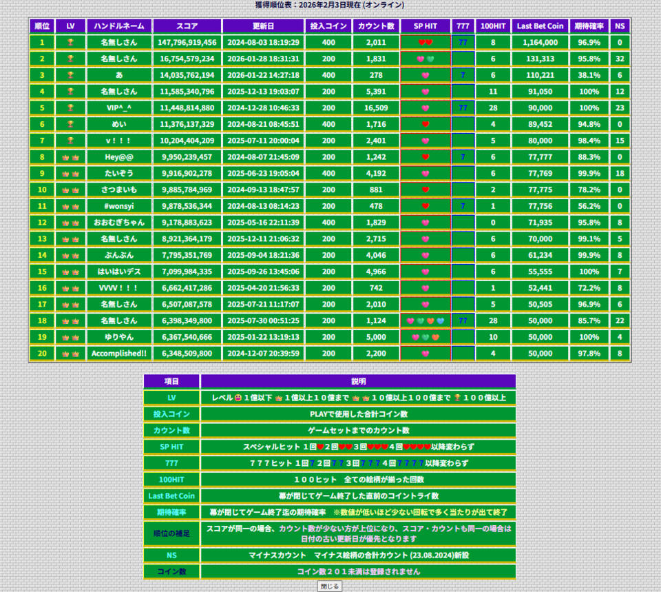 ・ハイスコアのオンライン登録ができます
