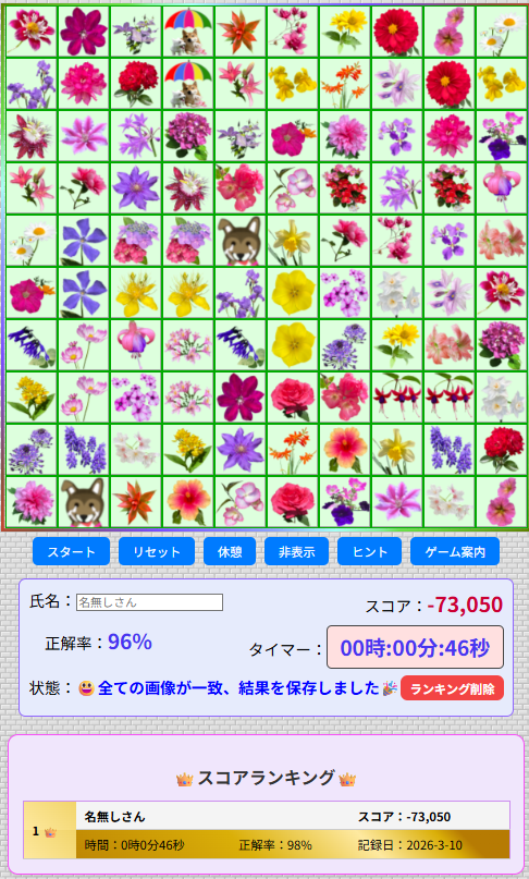 得点&保存:全画像クリアでスコア保存。