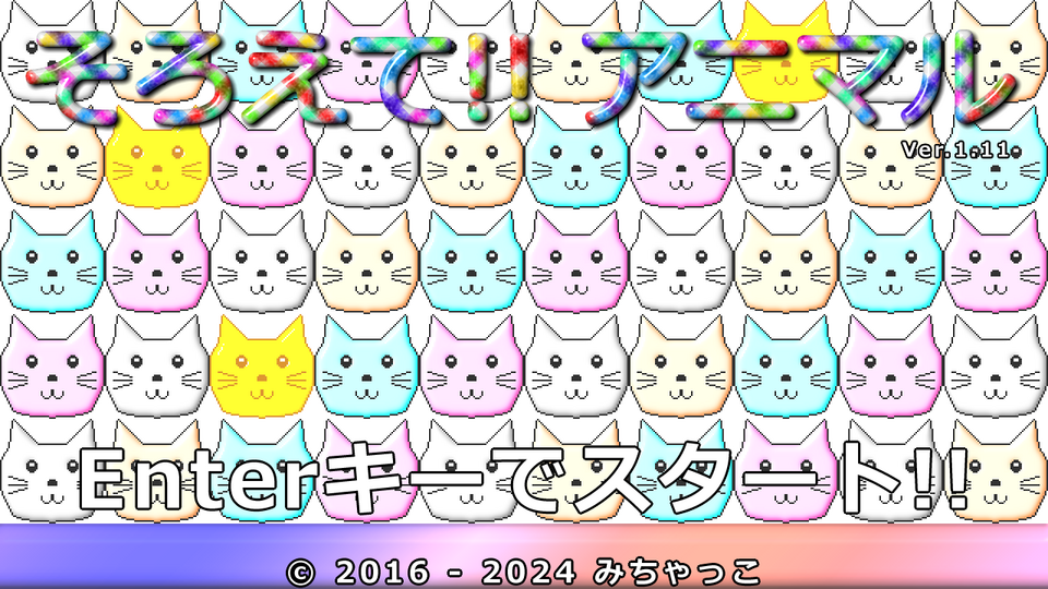 クリアー時間なし(エンドレス)中央上2マスにアニマルが詰まるとゲームオーバー
