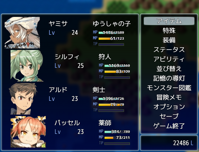 ※ツクールの仕様を知らずに使用不可にしていたため調合時にアイテム欄から消えていました。